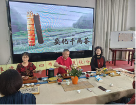 茶会雅集之中,一场温馨的净手签到仪式后,嘉宾与茶友们一同品鉴了绘画小长卷和应季的菊花插花,亲手制作“秋润怡芳”香丸,并品饮了特色节气茶——安化千两茶,静心观赏了茶艺表演,共同欣赏了唐代元稹《咏廿四气诗·秋分八月中》、欧阳勋茶诗《一杯茶》,以及书法家高象昶先生特意为本次茶会创作并书写的诗作。大家以茶为媒,在茶香墨韵间,共同感受着中华传统节气与茶文化的韵味与传承。